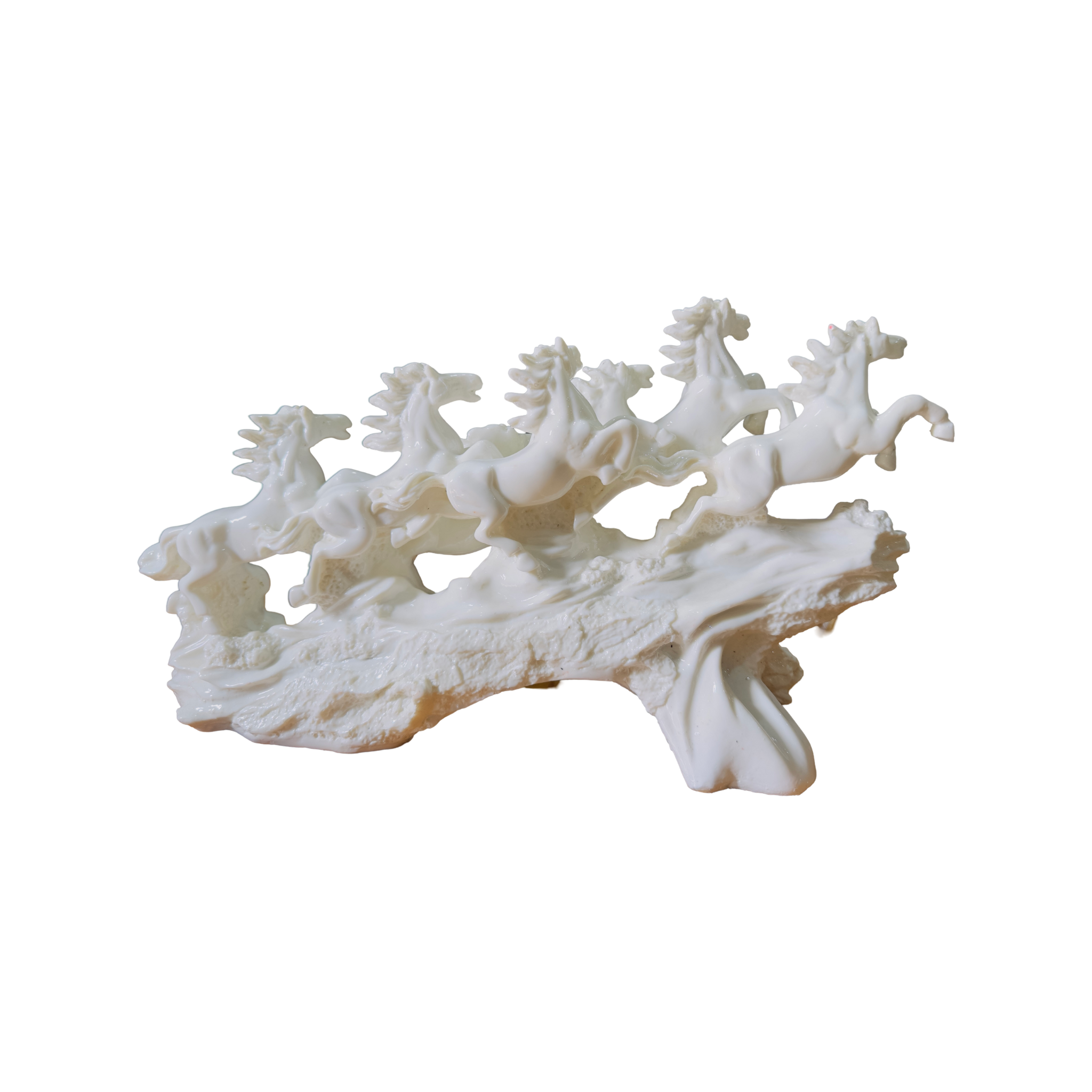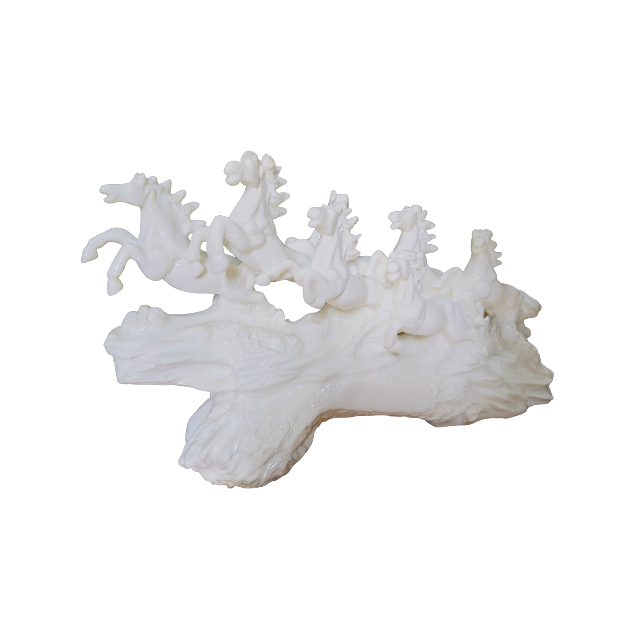 Marble 7 Running Horses Statue, Glossy White Horses on Wave...