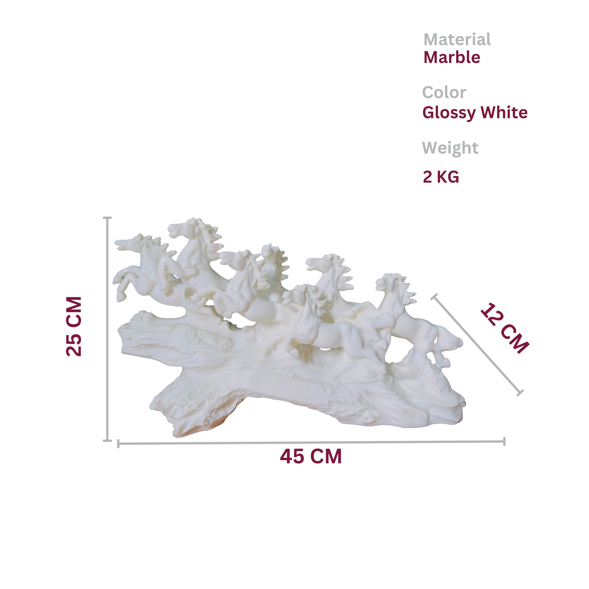 Elevate your space with the CRAFTVOGUE 7 Running Horses Statue. This 45 cm marble statue with glossy white finish is perfect for adding a touch of elegance and positive energy to your living roomoffice, or hall.