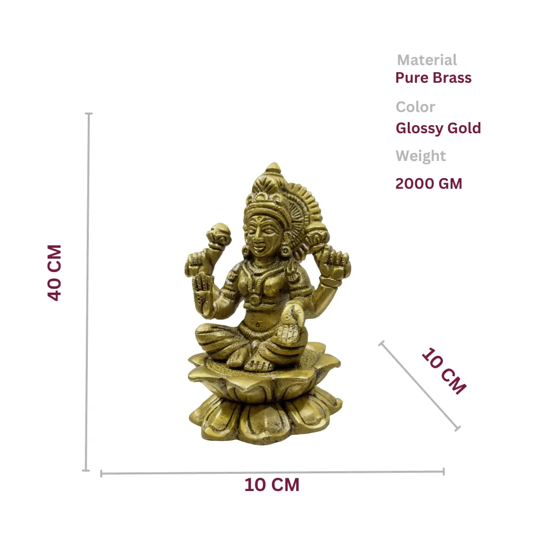 Pure Brass Craftsmanship: This beautiful Shri Lakshmi Ji idol is made from 100% solid brass, symbolizing purity, prosperity, and divine energy.
